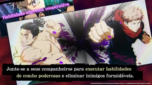 A jogabilidade é um RPG baseado em turnos. Você monta uma equipe de feiticeiros jujutsu e maldições para enfrentar inimigos em batalhas estratégicas. Em cada turno, você escolhe as ações dos seus personagens, usando suas Habilidades, Técnicas Amaldiçoadas e, o mais importante, ativando suas habilidades Ultimate, que vêm acompanhadas de animações cinematográficas de tirar o fôlego! 🧠💡